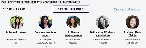 Jesica Siham Fernández (Ethnic Studies) served as the discussant and facilitator on a panel on "Creating Inclusive Cultures and Healthy Communities," that was part of the virtual program for biennial International Congress on Community Psychology. The panel featured renowned scholars Michelle Fine (City University of New York, The Graduate Center), Monica Madyaningrum (University of Sanata Dharma in Indonesia), Nuria Ciafolo (Pacifica Graduate Institute) and Urmitapa Dutta (University of Massachusetts-Lowell). Themes featured in this dialogue will serve as the foundation for an article contribution to a special issue on "Fostering and sustaining transnational solidarities for transformative social change: Advancing community psychology research and action" in the American Journal of Community Psychology.
