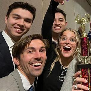 Political science majors Ariel Perlman '23, Bailey Black '25, and Liam McBride '24 help the Ethics Bowl Team advance to nationals.