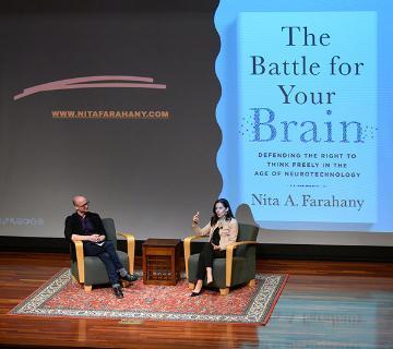 With a focus on the fields of neuroscience, genomics, and artificial intelligence, Professor Farahany spends her time helping to bridge divides and foster dialogue about the technologies shaping our lives. She has advocated for a new international human right to cognitive liberty that would enable human flourishing even as our brains can increasingly be tracked and hacked. We believe that her research focus will provide exciting topics for discussion across campus, and particularly with Santa Clara's neuroscience, ethics, biology, chemistry, psychology, public health, law, and religious studies departments, generating a great deal of interdisciplinary conversations on campus.