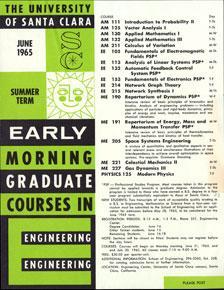 Responding to this need, then-dean of engineering Robert Parden launched a graduate program in civil, electrical, and mechanical engineering at Santa Clara in 1959. Beginning with an enrollment of 50 full-time engineers from local industry, the new “Early Bird” program featured classes held 7-9 a.m. Monday through Friday—a schedule that was perfect for the working professional. Though other universities and colleges offered graduate programs, Santa Clara’s was the first to cater to those who were seeking a part-time master’s program to update their skill set and put them at the cutting-edge of technology.