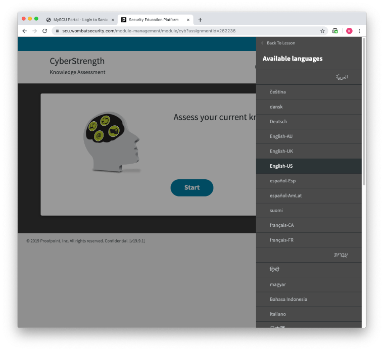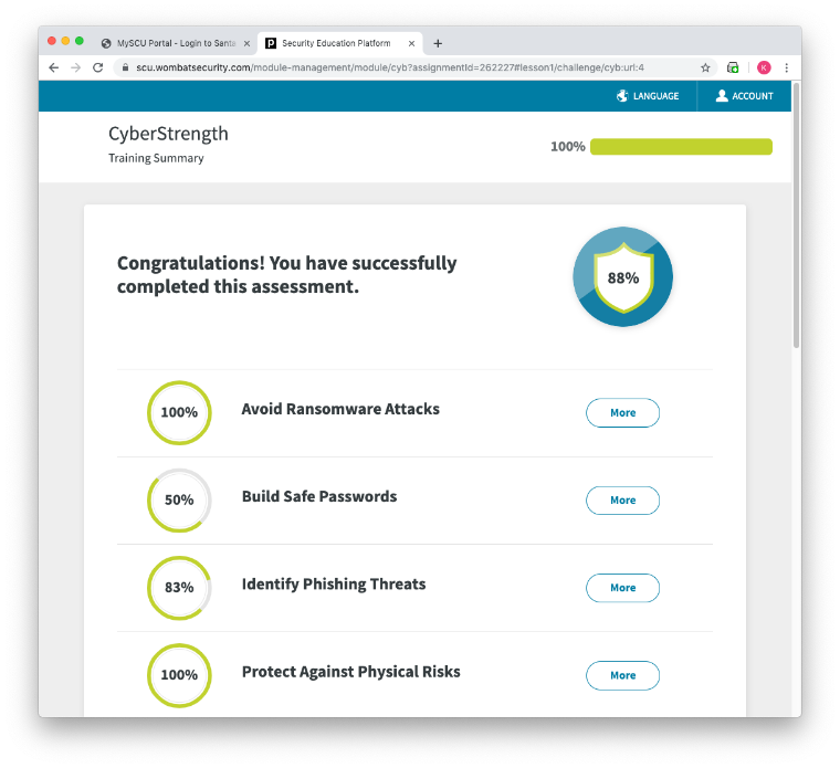 CLICK HERE to access the Cybersecurity Training. You will log in with your SCU account.