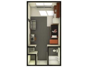 Bellarmine Hall houses graduate & law students and is conveniently located across the street from the southern edge of campus. The complex offers 60 single furnished and air-conditioned rooms in a three-story building with interior corridors, an elevator, and a central ground floor secured entrance. The rooms offer approximately 280 square feet of living space with a kitchenette and private restrooms. All utilities, cable television and access to the university's wireless data connection are included in the housing contract and are billed per academic term. Each studio is assigned to an individual student.