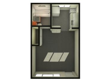 The University Square Studios are conveniently located across the street from the north edge of campus. The complex offers 8 single unfurnished studios (first-floor) and 8 single furnished studios (second-floor) in a two-story building with exterior corridors. The studios offer approximately 330 square feet of living space with a separate kitchen area and a private bath. A coin operated laundry facility and on-site parking are close at hand. All utilities, cable television, and access to the university’s high-speed network services are included in the lease and are billed per academic term. Each studio is assigned to an individual student. A building resident manager is available for assistance and to help plan community activities. A minimum 10-month contract is required.